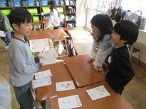 国語科「ものの名まえ」の学習で、「まとめてつけた名まえ」「一つ一つの名まえ」について学習しました。上手に区別することができたので、お店を開くことにしました。「コスモスをください」「いらっしゃいませ。何にしますか」などと丁寧なやりとりをしていました。「すぐに売れ切れた」「3つ買ったよ」と楽しそうに話していました。