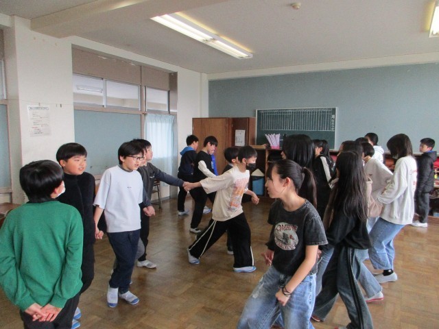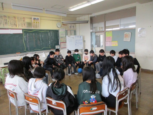 5年1組では、1年間がんばった記念に集会を開きました。各係のゲームをして、1年間の思い出を語りました。
