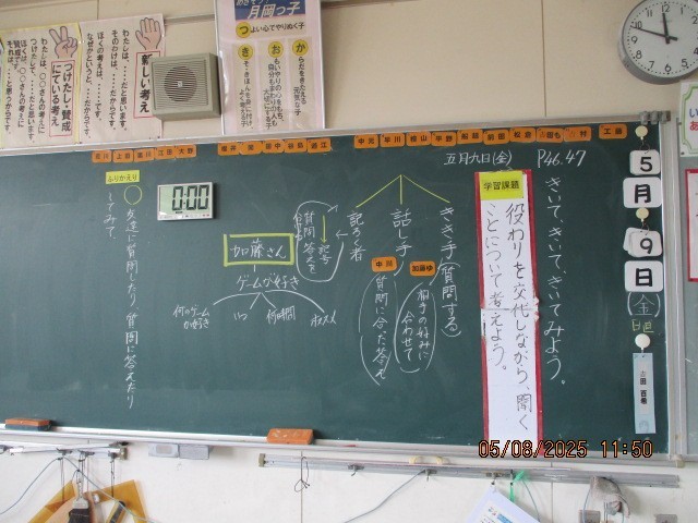 でも、学習もしっかりと行っています。画像は、5年生の国語科の学習の黒板です。