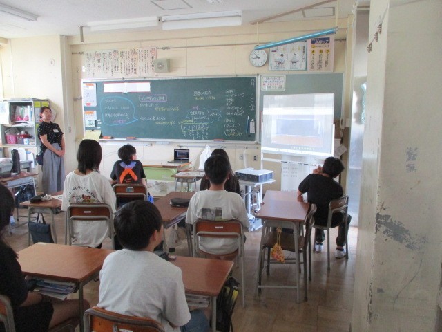 晴天に恵まれ、本日、プール開きです。リーモートで諸注意を聞いた後、1・6年、2・5年、3・4年に分かれて水泳学習を行いました。