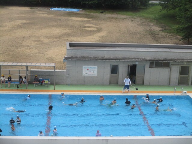 4年生は、気持ちよく水泳学習をしていました。水に慣れ、水の中の感触を十分に味わっていました。