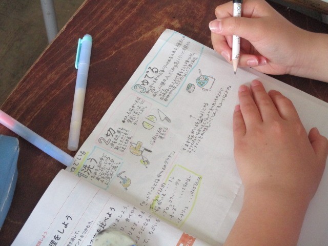 5年生は、家庭科「ゆでる調理をしようーゆでマスターになろう-」の学習をしていました。ジャガイモをゆでる手順などを絵でも表しながら上手にまとめていました。文だけでなく、絵や図などを取り入れて分かりやすくする力は、とても大切な力です。
