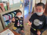 やじろべえや、どんぐりごまをつくった子供もいました。工夫しながらつくっていまし...