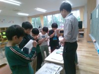 理科では、重さの学習をしています。塩と砂糖を同じ容器に入れ、体積を同じ状態にしたとき、重さはどうなるのか調べました。子供たちは「きっと砂糖の方が重いよ」「体積が同じならきっと同じ重さだよ」と予想を立...