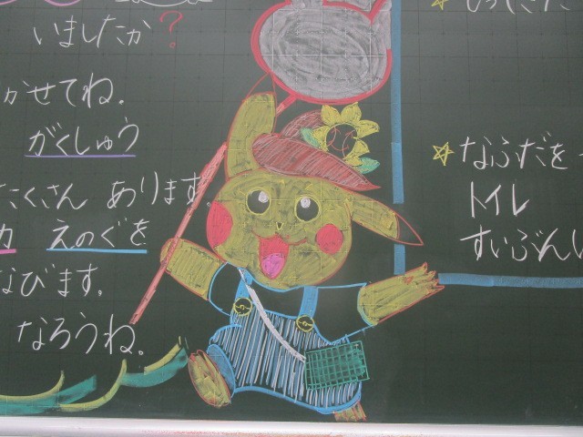 教室では、かわいいメッセージでみんなを迎える準備をしています。ゆっくりと、学校があるときの生活リズムに戻していきましょう。