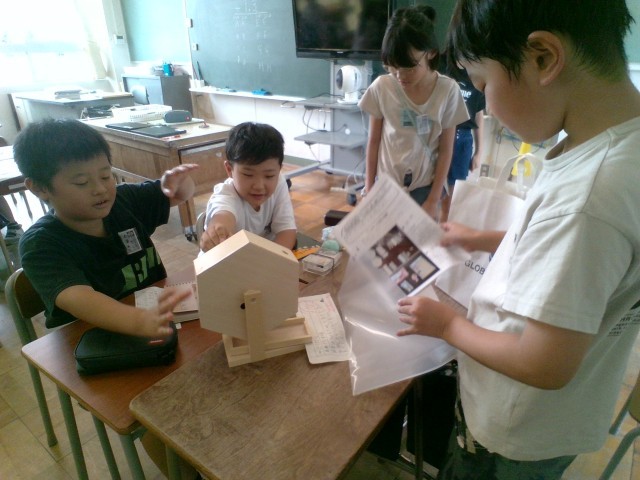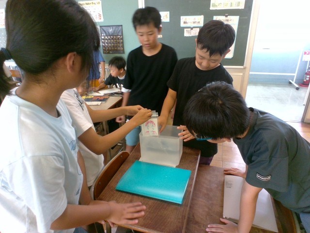 1組と2組合同で、夏休みの自由研究を紹介し合いました。様々な作品や研究があり、興味津々で紹介を聞いていました。作品のすてきなところや、頑張りを進んで伝え合う温かい時間になりました。