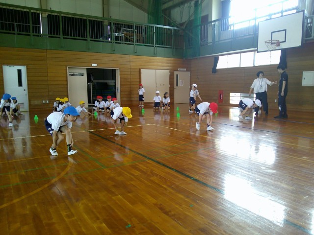 体育の時間に走りました。運動会に向けて、少しずつ走ったり、スタートの練習をしたりしています。暑いですが、思い切り体を動かして楽しそうな子どもたちでした。
