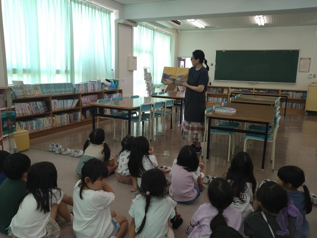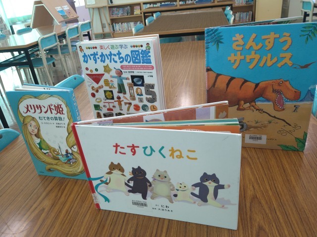 「さんすうザウルス」の絵本を読んでもらいました。恐竜たちが、算数を使っていろんな問題を解決していくお話でした。