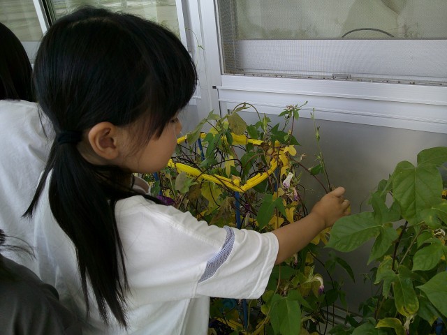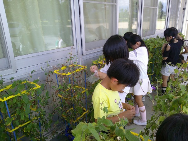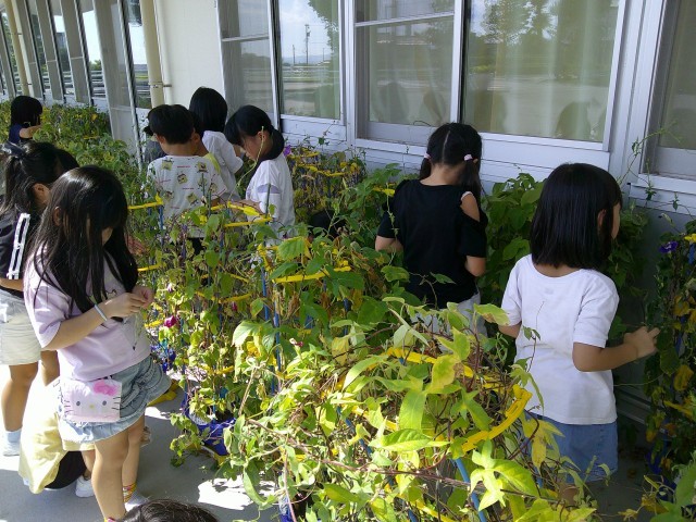 夏休み中もお世話を続けたあさがおが、種をつけはじめました。あさがおが枯れ始めて悲しかったけれど、この種を植えたらまたあさがおの花を見ることができるね、種をみんなにプレゼントしたいと、また新しい願いをもってお世話を続けています。