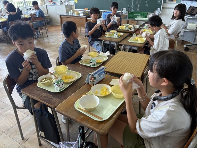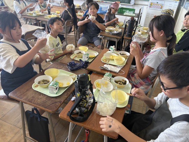 今日の給食は「給食から防災について学ぼう」ということで、自分でおにぎりを握って食べました。もしものことを想像して一度体験してみることは大切ですね。自分で握るおにぎりの味は格別でしたね。