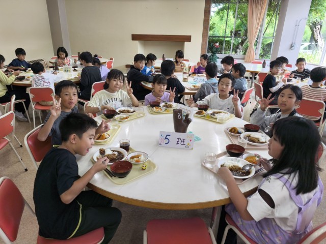 4年生の宿泊学習がスタートしました。自分たちで決めた「自分も友達も大切にし、時間いっぱい楽しむ宿泊にしよう」という目当てを胸に、学校を出発しました。1つ目の活動「森の木オリエンテーリング」は、班で声を掛け合いながら、楽しく活動することができました。おいしい昼食を食べて、午後からの活動も頑張ります。
