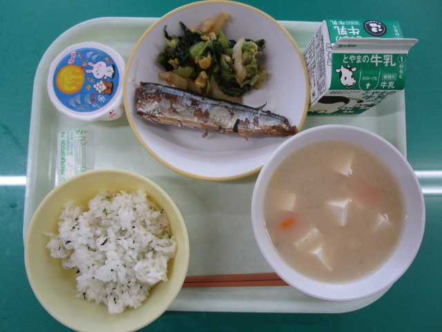 今日の献立には、月見団子の入った味噌汁、月見ゼリー、さんまのマーマレード煮がありました。秋を楽しむ献立です。季節ならではのものを美味しくいただきました。