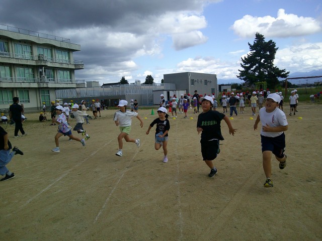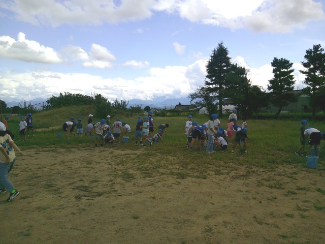6年生は応援練習を、1~5年生はグラウンドで走る練習と草むしりをしました。縦割り班で走る練習をしたので、「〇年生に勝ったよ!」「〇年生は速かったな!」と、互いに刺激を受けていました。