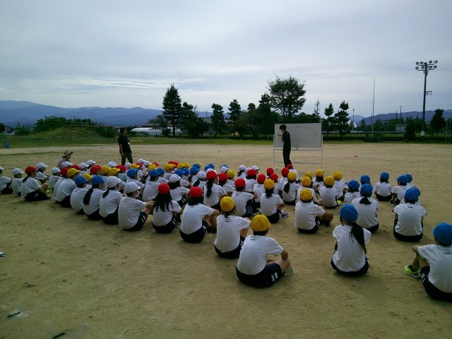 その後、選抜リレーの練習もしました。運動会の最終種目です。1~6年生の選ばれた選手たちでバトンを繋ぎます。