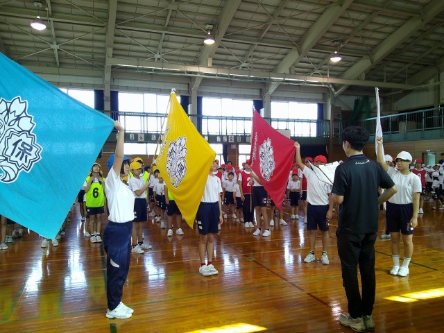今日は、体育館で開閉会式の練習をしました。児童会長の言葉や団長の力強い宣誓等、6年生がリーダーとなって頑張っています。