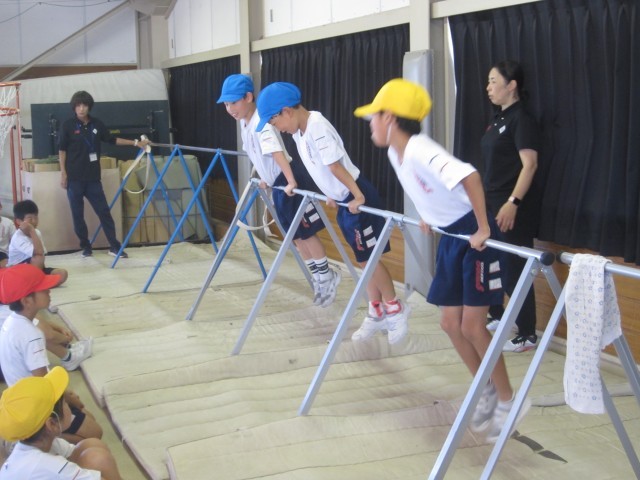 今日の体育は、外部から鉄棒の先生に来ていただいて鉄棒を楽しむためのコツを教えていただきました。