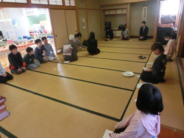 今日は最後のクラブ活動でした。茶道クラブでは、今まで習ってきた作法を活かしてお茶会を行い、先生方を招待しました。緊張した面持ちの中、先生方から「美味しかったです。結構なお点前でした」のお言葉をいただき、少しずつ笑顔が見られる子供たちでした。