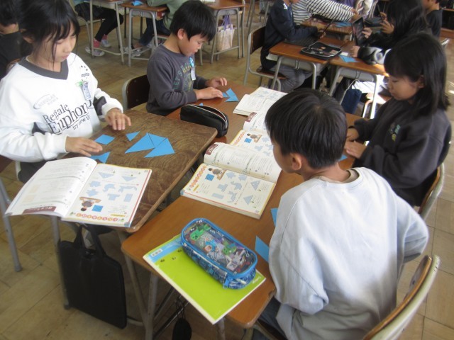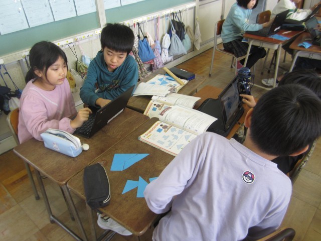 三角形や四角形を並び替えてさまざまな形を作る、タングラムに挑戦しました。