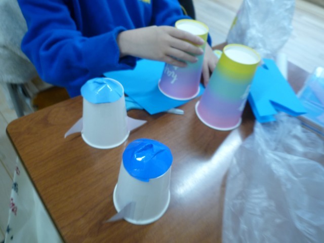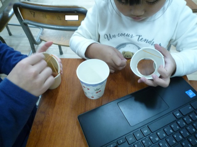 10月の終わりごろから作り始めた「うごくおもちゃ」が仕上がってきました。「もっと遠くまで飛ぶ『ふくろロケット』にしたい」や「もっとかわいい『コトコト車』にしたい」という思いをもって、試行錯誤する子供たちです。それぞれの納得のいくおもちゃが完成したら、クラスのみんなで遊びたいですね。