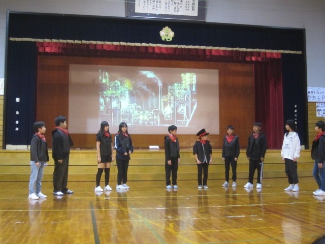 6年生の発表です。自分たちで役の気持ちや動き等を考えながら、練習を積み重ね、演技に取り組みました。