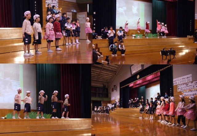 1年生:学習発表会:11月22日(土) 公開日 2025/11/22 更新日 2025/11/22 1年生の部屋 今日は新保っ子になって初めての学習発表会。大勢のお客さんを前に緊張していた子供たちも、発表が始まると「にっこにこ」の笑顔が見られるようになりました。終わった後、「緊張したけれども楽しかった」「終わった後すっきりした」「校内発表会は100点だったけれど、今日は200点だった」と振り返りました。自分たちも見ている人も「にっこにこ」になることのできた発表でした。
