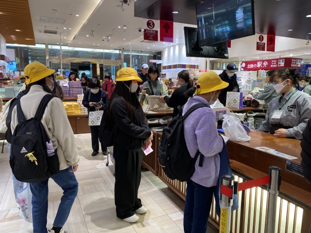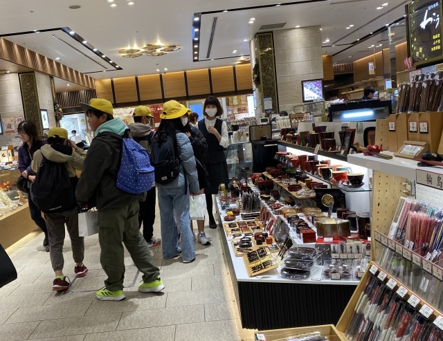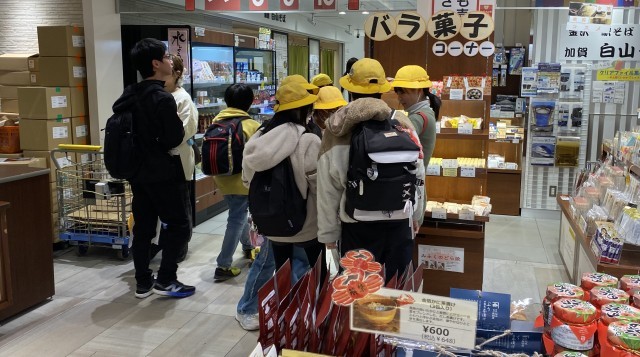 今日は待ちに待った金沢方面への校外学習。金沢駅に到着し、まずはお土産を買いました。金沢といえば…あんころ!五郎島金時の饅頭!とお菓子を選ぶ人や、思い出に残る扇子や栞を選んでいる人もおり、それぞれ想い想いに好きなお土産を選んでいました。家に帰ってから、思い出話をしながら、お土産を家族に見せ合う時間が楽しみです!