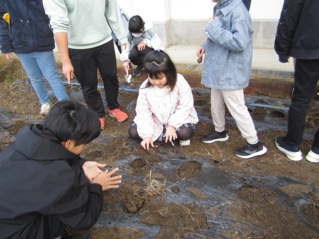 環境委員会が中心となり、来年度の春に向けてチューリップやスイセン等の球根を植えました。これまで、たくさんの新保っ子がボランティアで草むしりをした花壇に、ひとつひとつ心を込めて植えました。冬を越えて、きれいな花が咲くといいですね。
