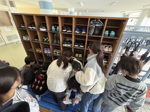 気持ちよく新学期を迎えるために、昨日と今日で教室や下足箱を大掃除しました。子供たちは、普段の掃除では掃除仕切れない、ロッカーの上や入口のレールなどを丁寧に掃除しました。