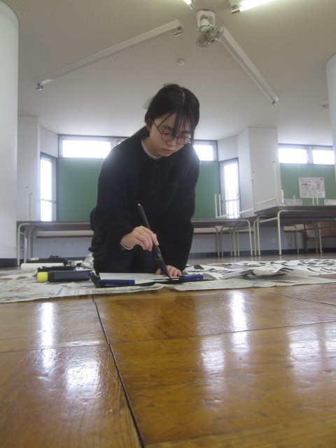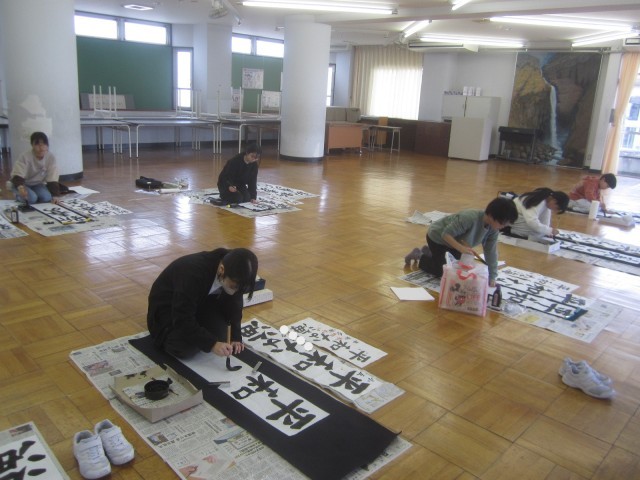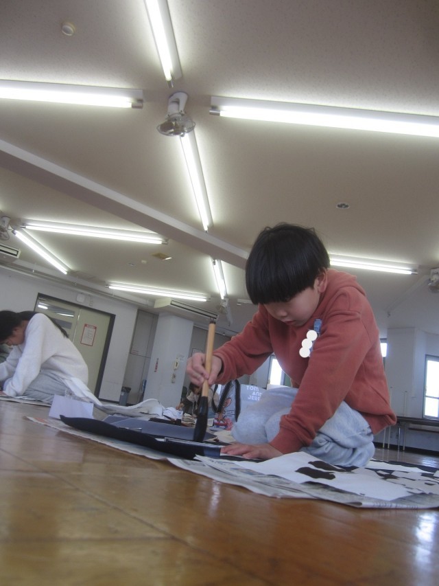 県書初大会の2回目の練習会を行いました。今日は、指導されたことを念頭に置きながら、自分のペースで書き進めました。どの子からも、真剣な表情がうかがえます。「一筆入魂」で、すばらしい作品を書き上げました。