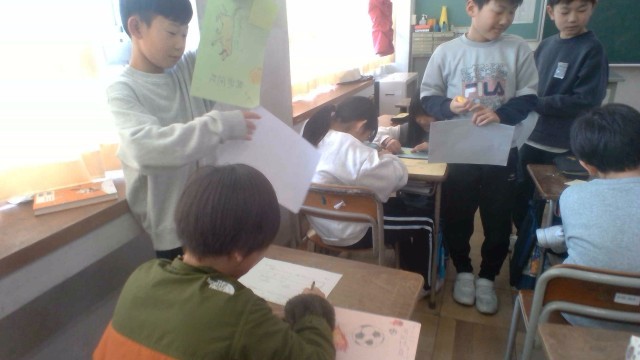 今日は、自分が選んだテーマで集めた詩集を友達に紹介しました。感想をカードに書いて渡し合い、友達同士で詩を楽しみました。
