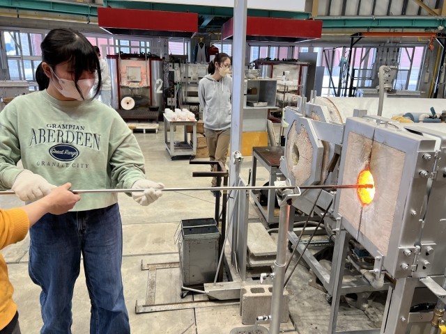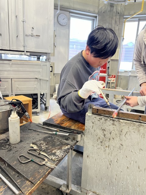 卒業制作として、6年1組が富山ガラス工房でペーパーウェイトの制作をしました。ドロドロのガラスが固まっていく様子に興味津々でした。完成が楽しみです。明日は6年2組です。