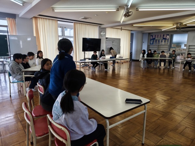 「卒業をお祝い週間」に向けて、5年生がプロジェクトを立ち上げ、全校に働きかけています。今日は、第1回代表委員会を開き、各学年から参加した代表委員の子供たちで、卒業お祝い週間の「テーマ」についての話し合いを行いました。5年生が考えたテーマに沿って、「感謝の気持ち」「かっこいい6年生」「全力で伝えたい」等、いろんなキーワードが子供たちの中から出てきました。このあと、各学級で話し合って6年生への思いを深め、卒業お祝い週間へ気持ちを盛り上げます。さあ、子供たちは、どんなお祝い週間をつくり上げるでしょうか…。