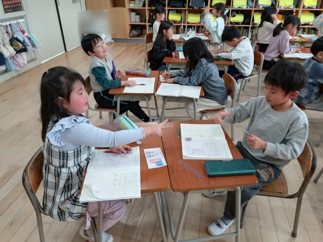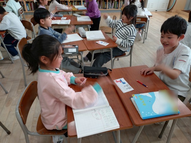 1年生:陣取りゲーム:2月10日(火) 公開日 2026/02/12 更新日 2026/02/10 1年生の部屋 広さの学習の後で「陣取りゲーム」をしました。じゃんけんをして、勝ったら一マス塗ることができます。ゲームの後、マスの数を数えて勝敗を確かめました。
