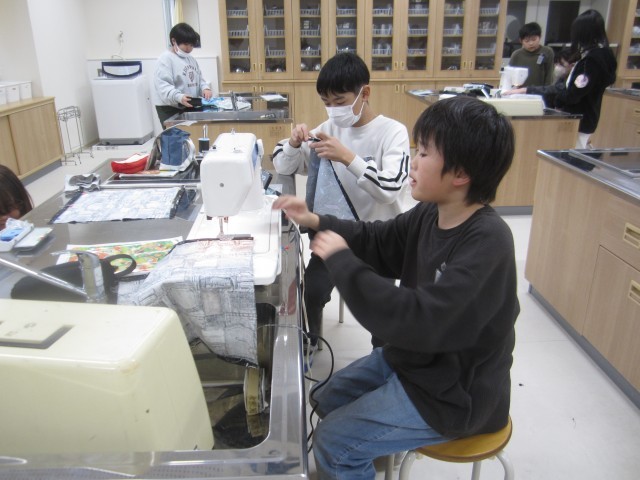 子供たちは、縫い目がまっすぐになるよう、集中してミシンに取り組んでいました。