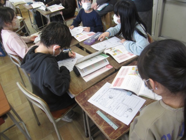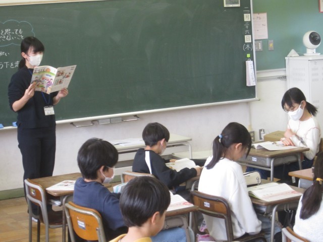 道徳の学習で「思い切って言ったらどうなるの?」というお話を読み、正しいことだと分かっていても実践できない登場人物の葛藤について考えたり、登場人物が正しいことを実践できるように背中を押す言葉を考えたりしました。子供たちは、自分だったらどうしようと真剣に考え、ワークシートに自分の考えを書き込んでいました。