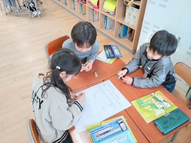 1年生:国語科「これは、なんでしょう」:3月6日(金) 公開日 2026/03/06 更新日 2026/03/06 1年生の部屋 グループで学校にあるものの中から問題にするものを決めて出し合いました。どんなヒントを出すか、どの順番でヒントを出すか、相談して決めることができました。