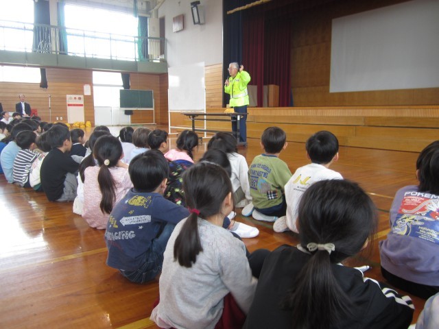今日は、交通安全防犯教室がありました。子供たちは、「いかのおすし」など、安全に登下校するために大切なお話を真剣に聞いていました。
