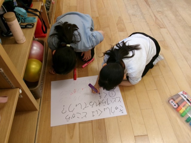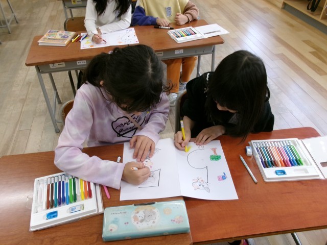 生活科の時間に、1年生に学校案内をする準備を進めています。各部屋で出題するクイズや、案内用の旗を作り、1年生に新保小学校のことを知ってもらおうと頑張っています。