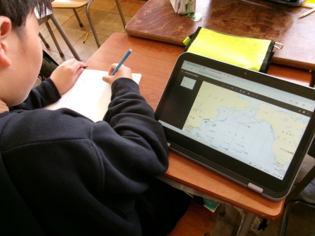 国語では、グループの友達が決めた「ひみつのことば」を引き出すための会話を考えながら、友達とたくさん話をしています。理科では、天気の変化を調べるために、空の様子を写真や言葉で記録しはじめました。社会では、地球儀や世界地図を見て気付いたことから、日本の国土について考えていきます。