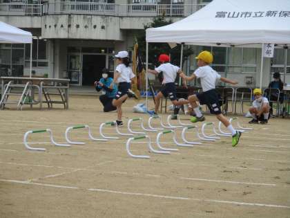 巧緻走「くぐって、とんで、じゃんけんぽん!」では、6年生さんとのからだじゃんけんを楽しみながらゴールを目指しました。