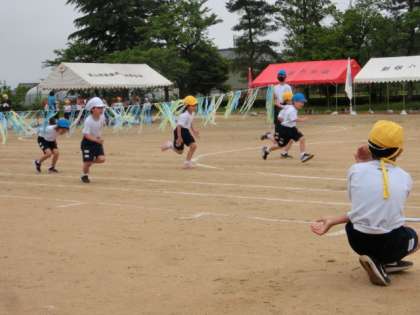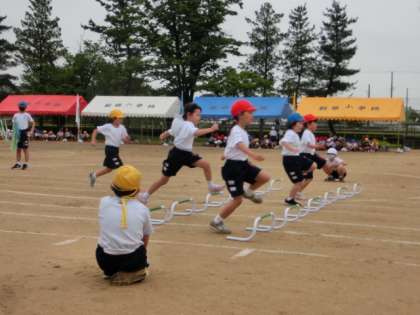 「きときと新保っ子ミニ運動会低学年の部」2:5月19日(木) 公開日 2021/05/19 更新日 2021/05/19 今日の新保っ子 低学年の巧緻走は、「くぐって とんで ジャンケンポン」です。滝をくぐり、ミニハードルを跳び、6年生とジャンケンします。勝った人はフープのジャンプを1回、負けた人とあいこの人は2回跳びます。