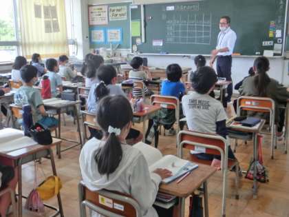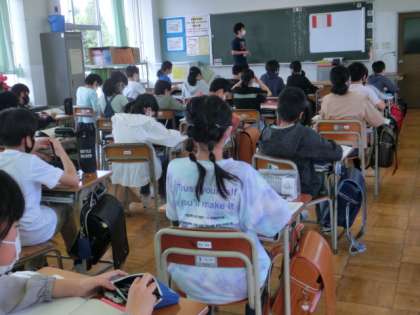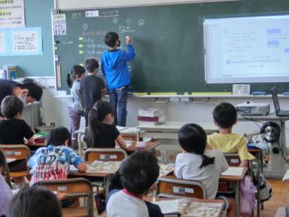 授業では、先生の話をしんかり聞いたり、自分の考えを黒板に書いたりして集中して取り組んでいます。