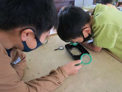 昨日は緑色だったさなぎが、茶色っぽくなってきました。「もうすぐチョウになるのかな?」と子供たちは楽しみにしています。