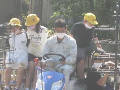 田植えを通して米作りに興味が湧いてきたようで、JA職員の方にどんどん質問していました。