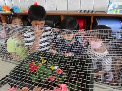 理科で育てているモンシロチョウが成虫になりました。2組では、このまま育てるか、外に放すか、白熱したクラス会議が行われました。「寿命が10日だと本に書いてあったから放してあげたい」「大切に育ててきたから、これからも大切にしながら、観察もしていきたい」と、どちらの意見も「なるほど」と思えます。数日クラスで育て、放すことにしました。