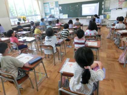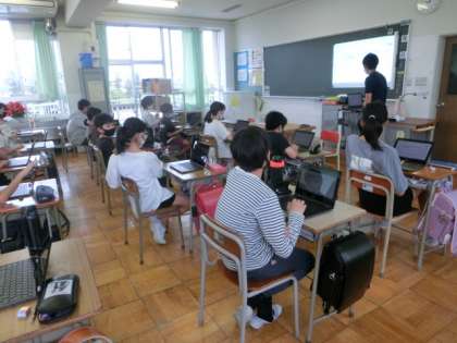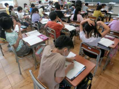 授業では、ノートやワークで書く力をつけるようにしています。集中して、丁寧に文字を書くようにしています。また、6年生では、クロムブックに自分で問題を書いて作成しています。
