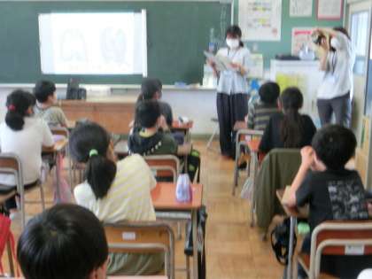 4年生は、富山市南保健所の方に来ていただき、「禁煙教室」を行いました。たばこを吸っていると、肺や歯が黒くなること等を学びました。