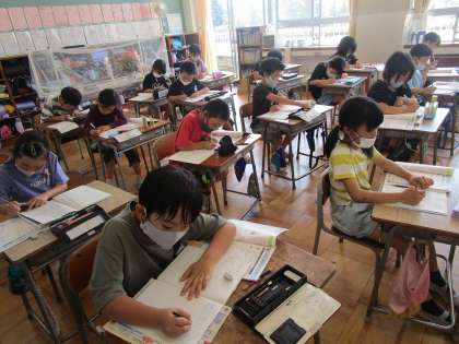 算数では、大きな数の筆算のまとめに入っています。集中して学習に取り組んでいます。