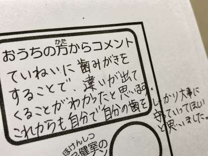 保護者のみなさま、ご家庭でのお声かけ・メッセージのご記入等ありがとうございました。