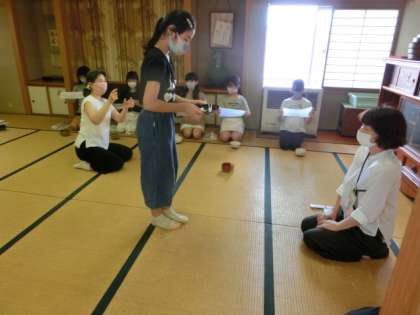 茶道クラブは、指導講師の先生に教えていただき、お手前やお運びの練習をしました。